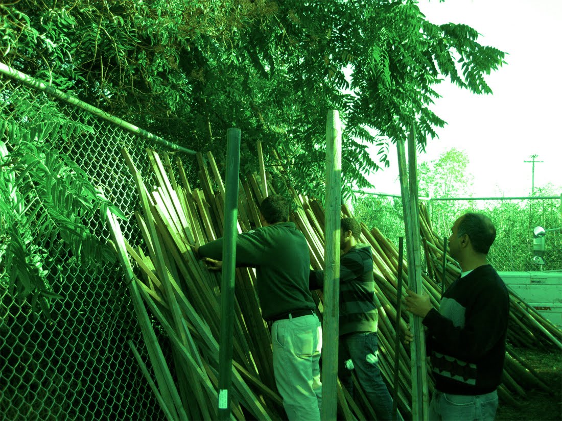 Tal y cómo las abejas construyen un nido o panal hecho a base de huecos acomodados uno despúes del otro. Así también nosotros nos vimos en la labor de reunir los materiales necesarios, cortar y atornillar para darle forma al nido de árboles "Buckeye" (Aesculus glabra, originario de Ohio), en el que los brotes, puestos en macetas de plástico (ésto vendrían a ser los huevos, siguiendo con la comparación con las abejas), permanecerían bien cuidados, antes de ser traspasados y plantados sobre tierra firme.